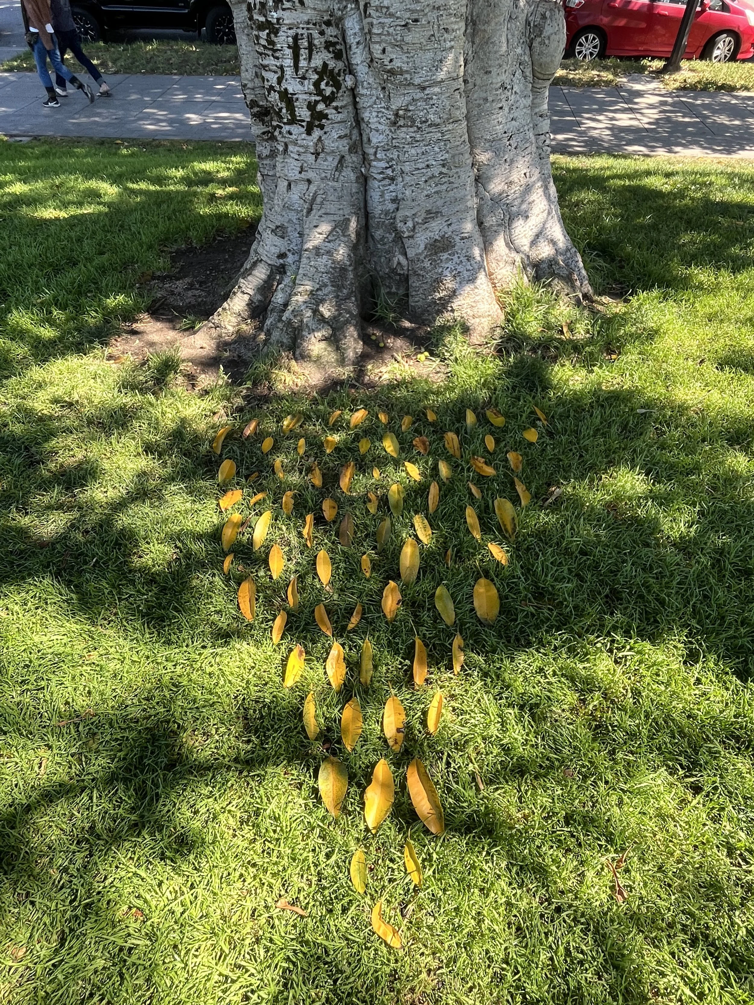 Find some out of the way spot to create something with just what’s there: leaves, fallen branches and blossoms, stones, feathers.